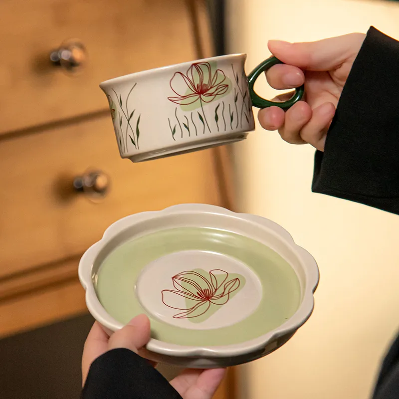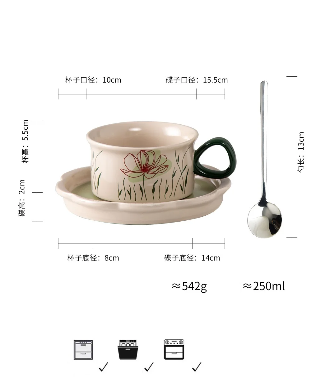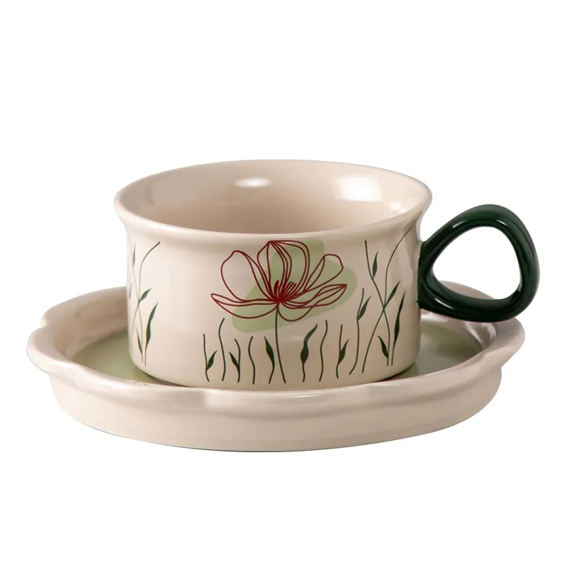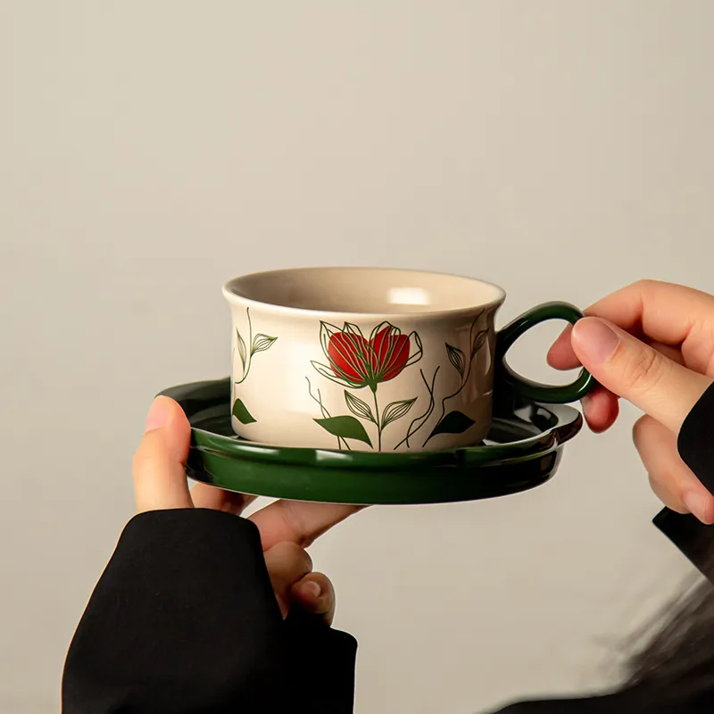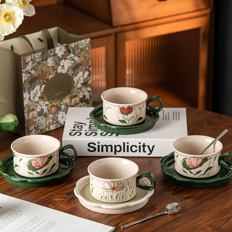 250ml Nordic Turkish Vintage Flower Ceramic Coffee Milk Tea Cups Saucer Set for Party and Wedding