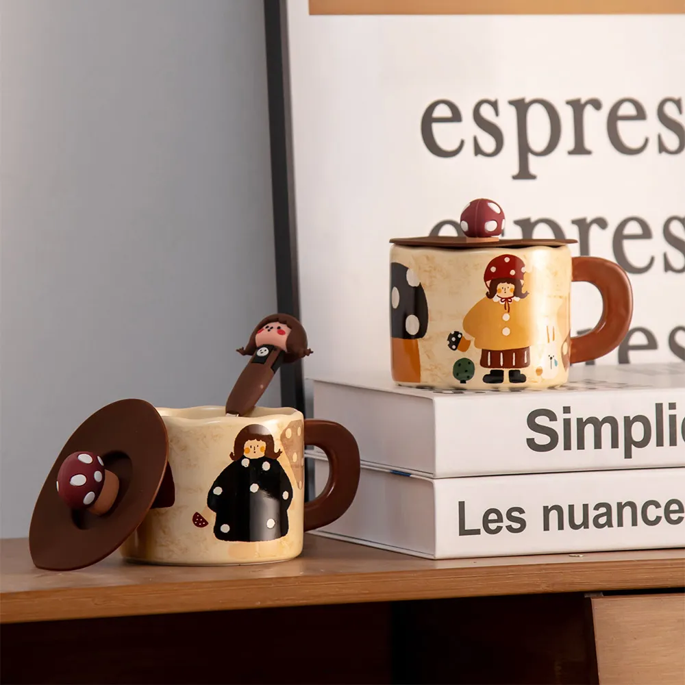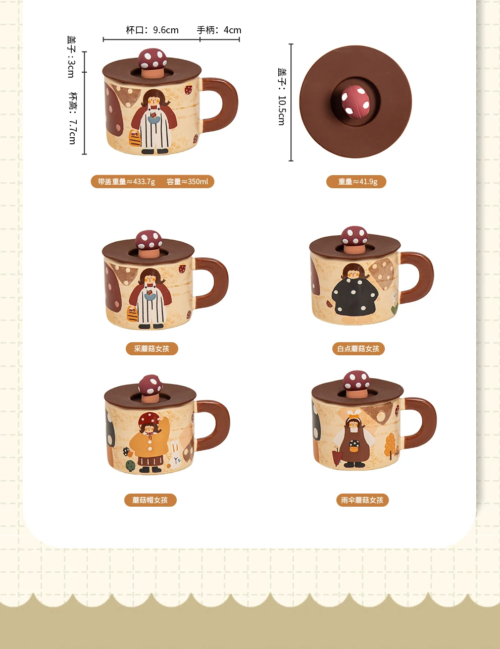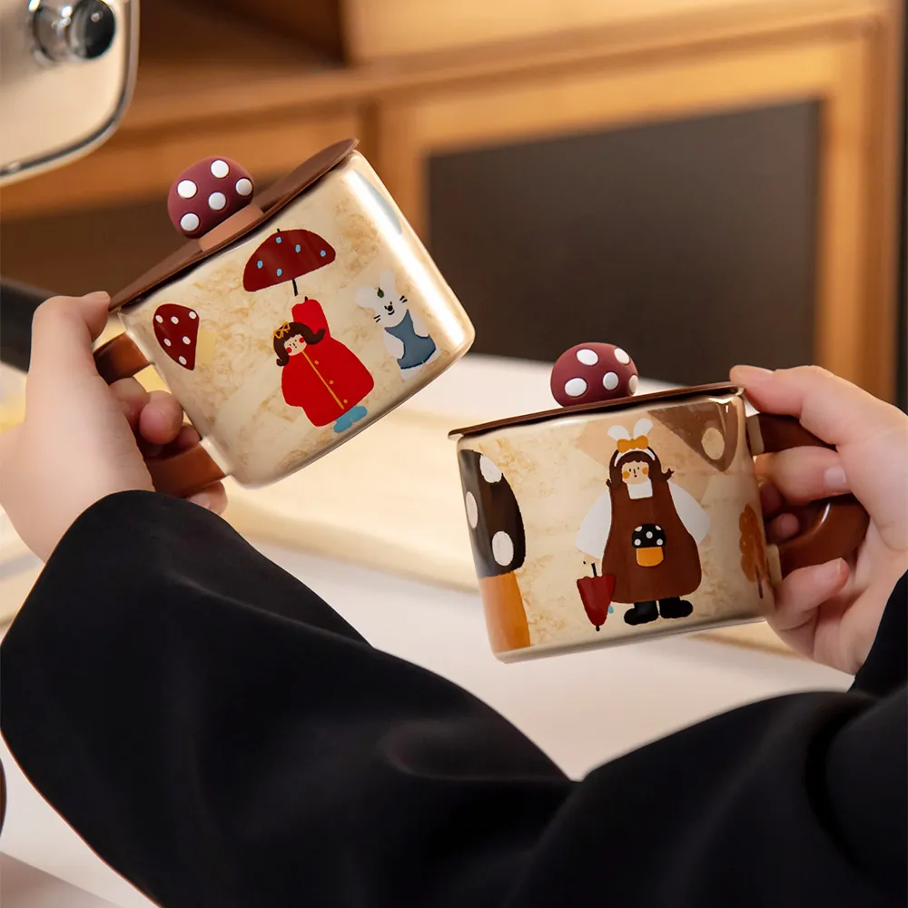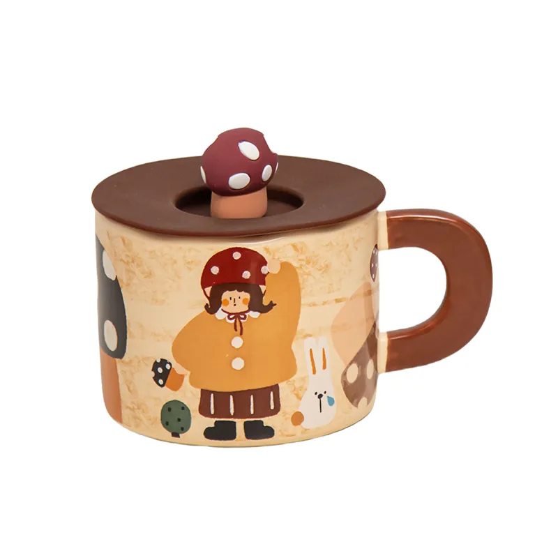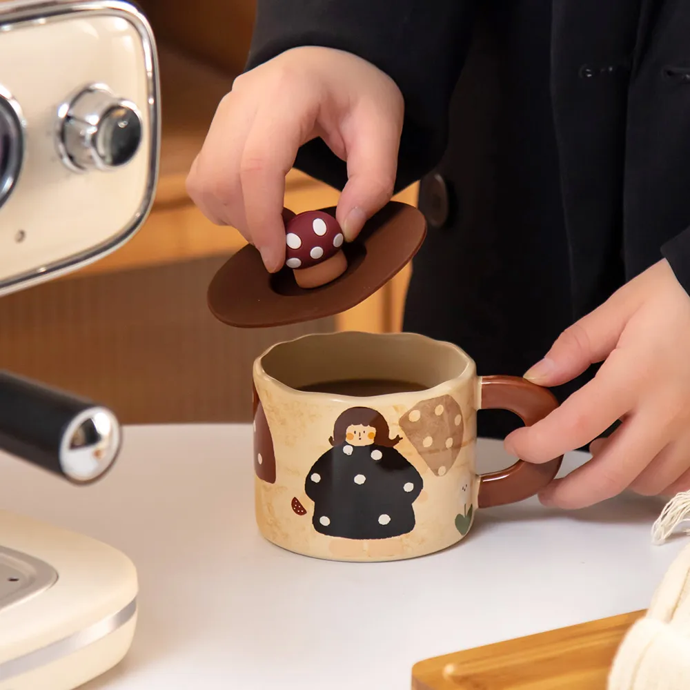 Adorable 350ml Mushroom Design Ceramic Coffee Mug With Lid for Tea & Coffee
