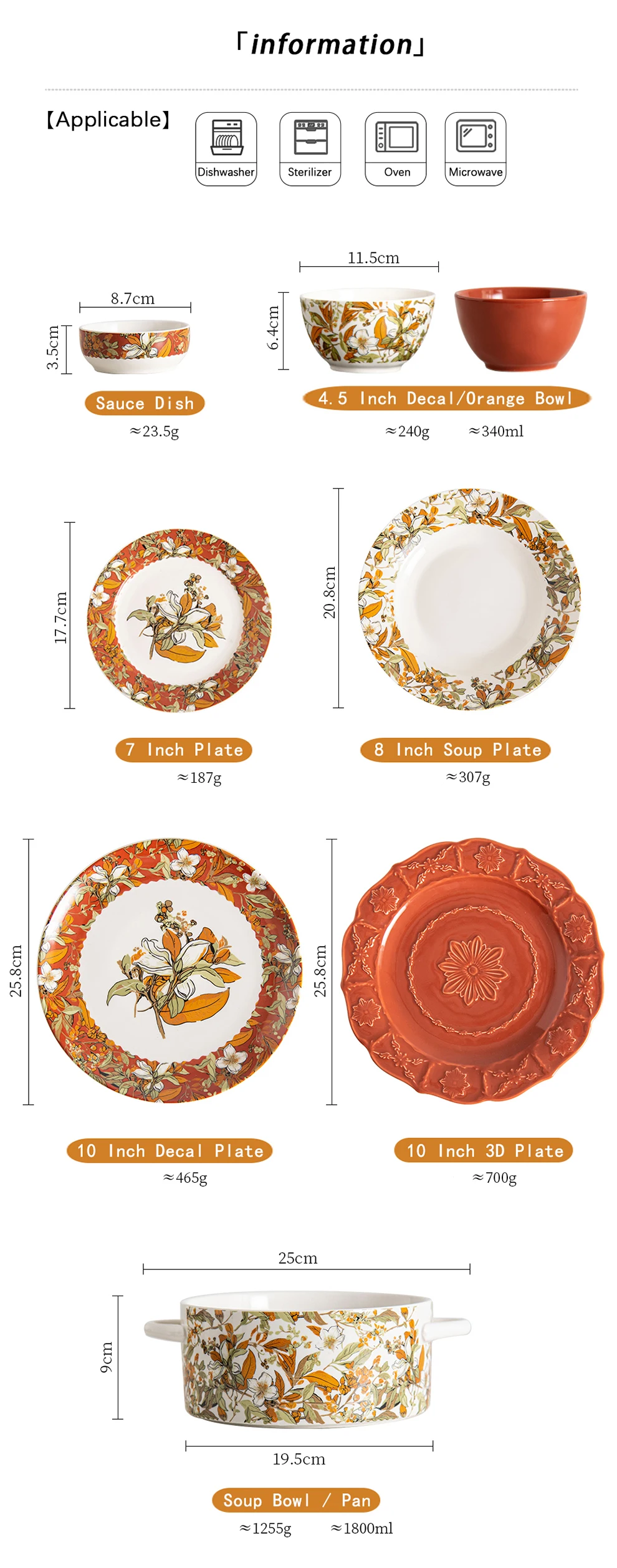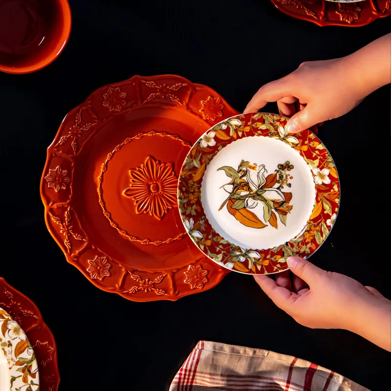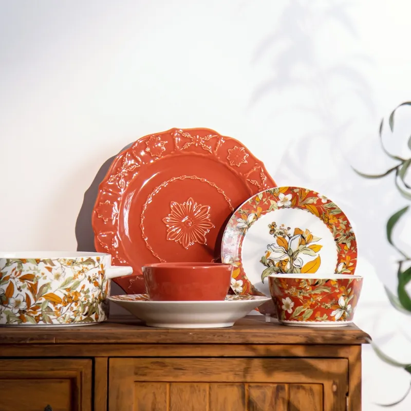 Home > Products > Dinner Set > Brand New Vintage Turkish Ceramic Dinner Set with Floral Design in Orange Porcelain Floral Dinner Plates