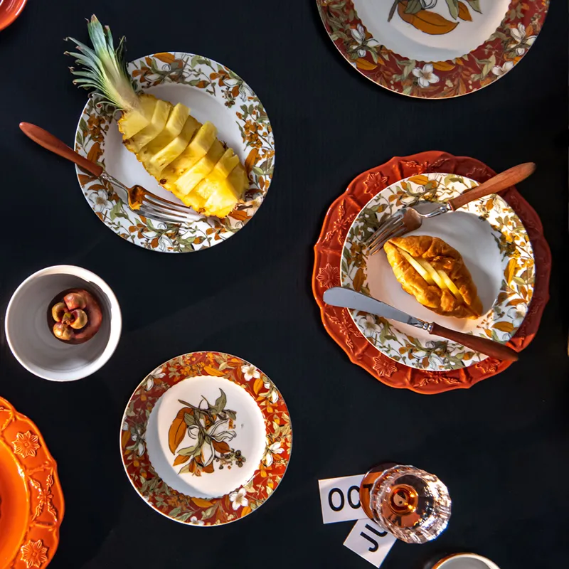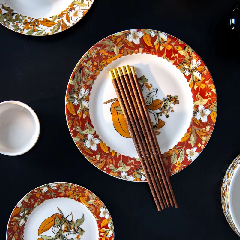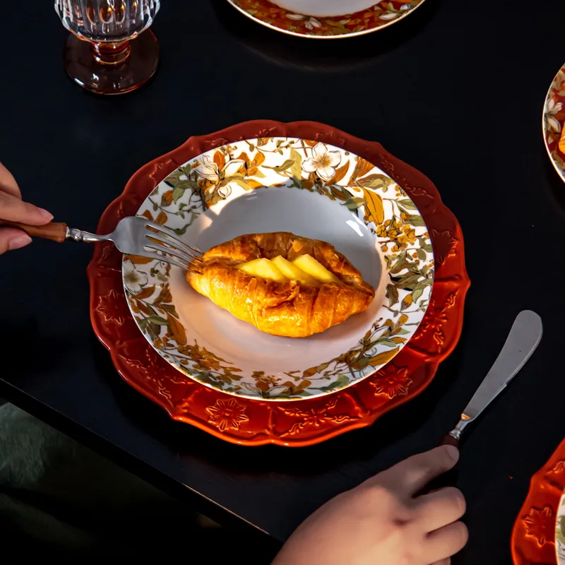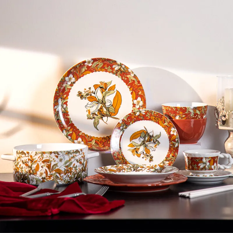 This "Fancy European Plates Sets Gardenia Dinnerware Sets" is an elegant ceramic tableware collection inspired by European design, featuring beautiful Gardenia floral motifs. Perfect for formal dining, family gatherings, or gifting, the set combines traditional charm with modern sophistication. Made from high-quality ceramic with meticulous craftsmanship, it is both durable and stylish, enhancing the overall dining experience with a touch of refinement.