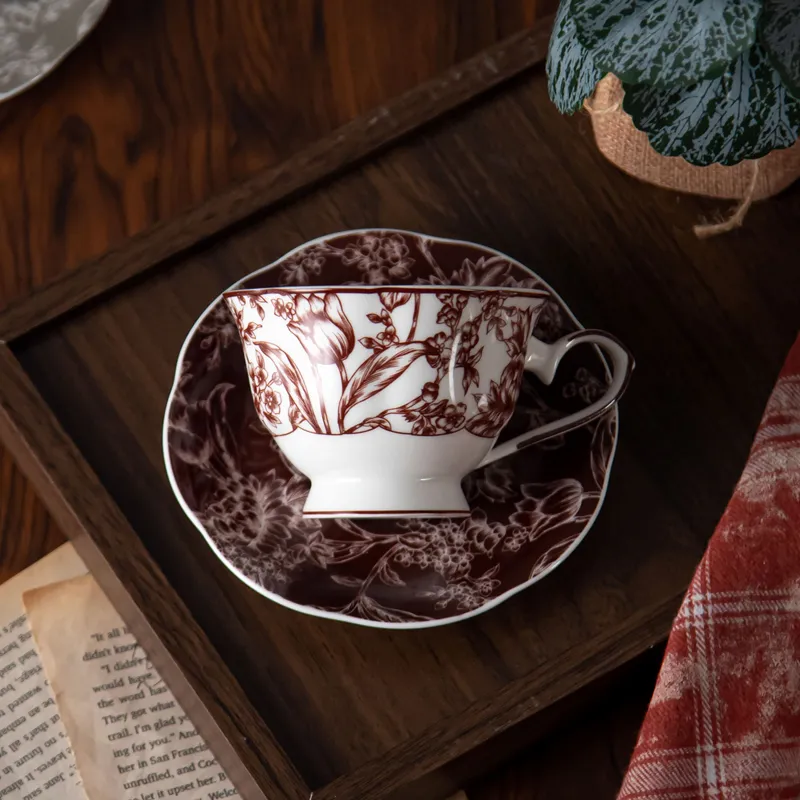 Elegant Porcelain Coffee Cup and Saucer Set with Classic Floral Pattern