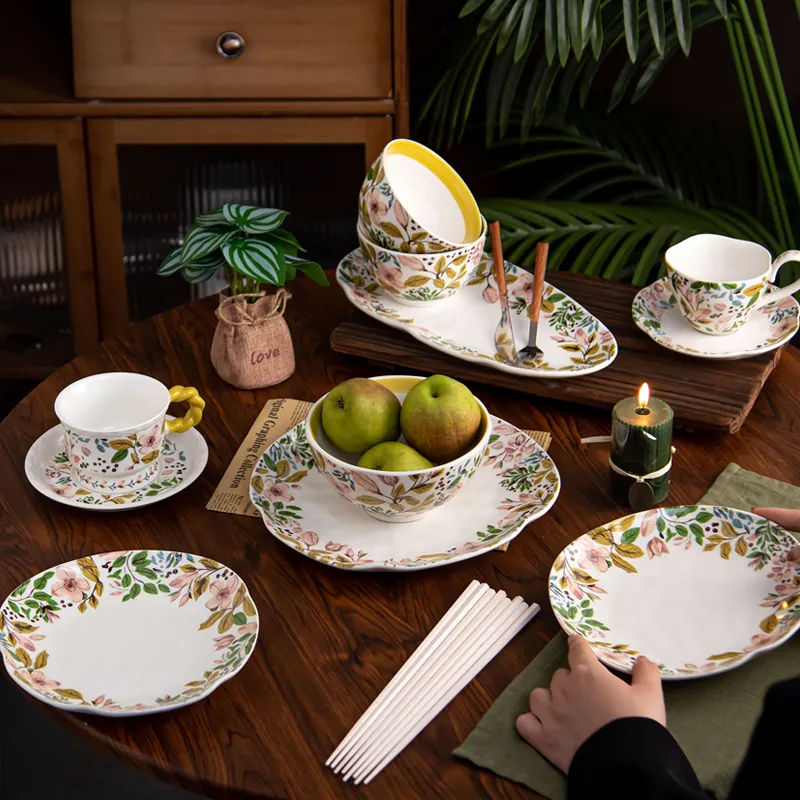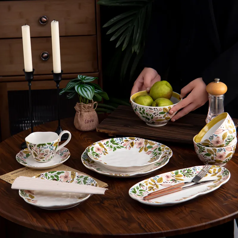 Floral Pattern Ceramic Dinnerware Set for Everyday Dining & Elegant Table Styling