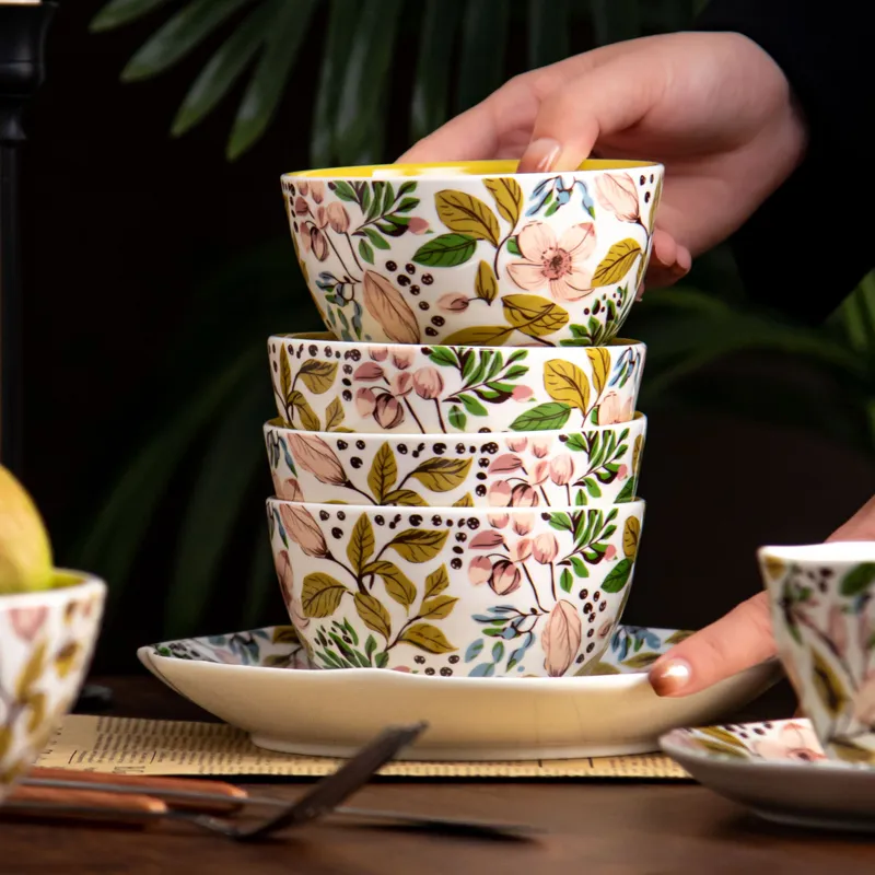 This floral ceramic tableware collection is designed to bring elegance and practicality to everyday dining. Crafted from high-quality ceramic, each piece features a delicate botanical pattern with a smooth glazed finish, offering both visual appeal and long-lasting durability.