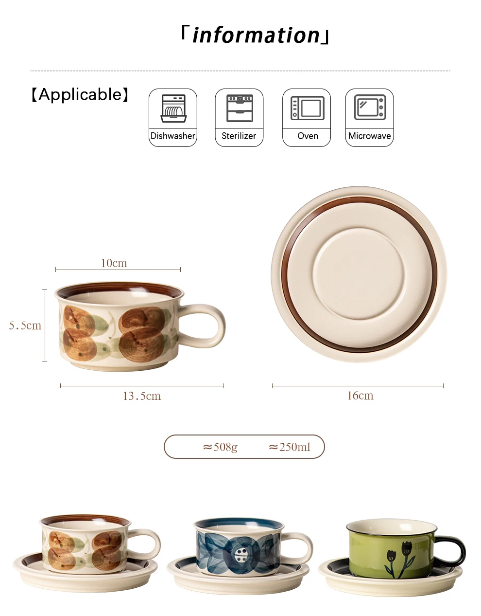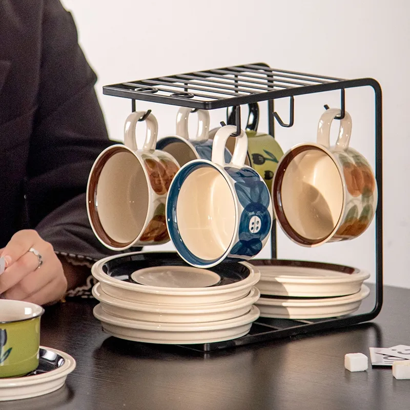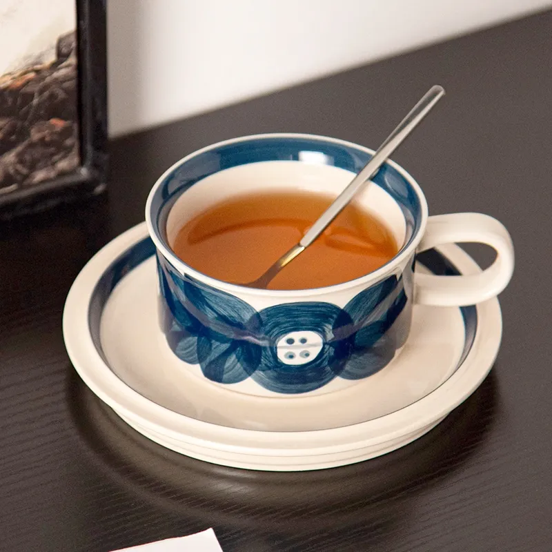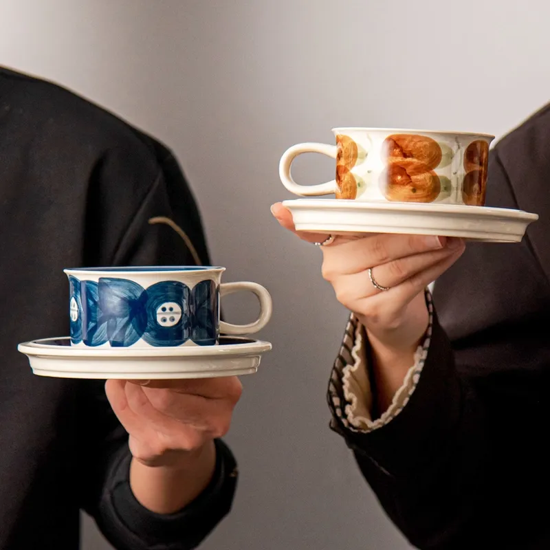 Home > Products > Coffee set > Vintage Ceramic Floral Tea Cups Porcelain Cappuccino Latte Mug and Saucer