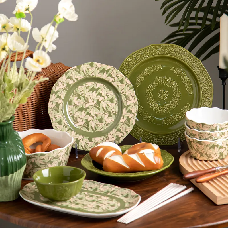 This Wholesale Delightful Ceramic Dinnerware collection features stylish and premium porcelain plates and dishes. These ceramic pieces are designed with modern aesthetics and high-quality materials, making them perfect for both everyday dining and special occasions. The sets include a variety of dinner plates, salad plates, and bowls, all crafted to enhance any dining experience with their elegant and sophisticated designs.