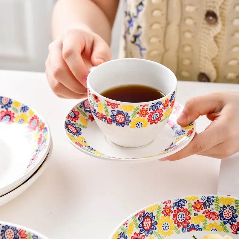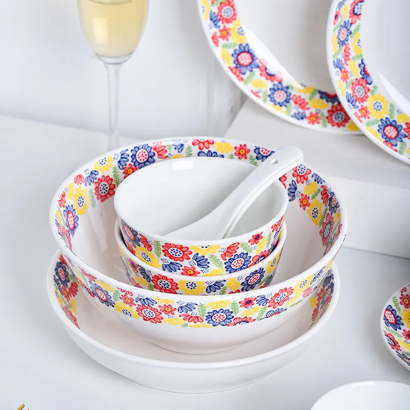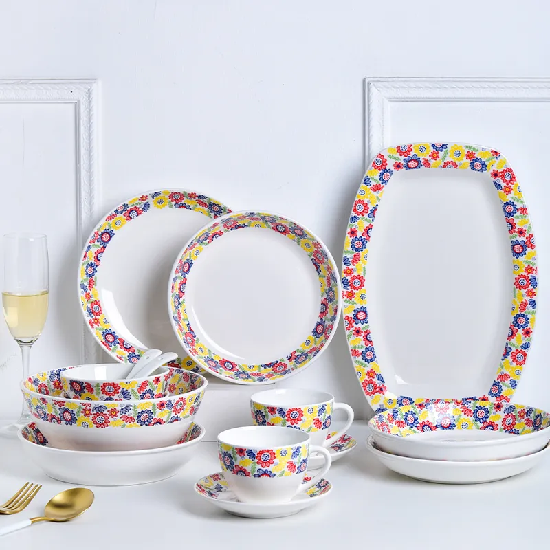 Wholesale Floral Plate Ceramic Dinner Sets Porcelain Floral Dinnerware