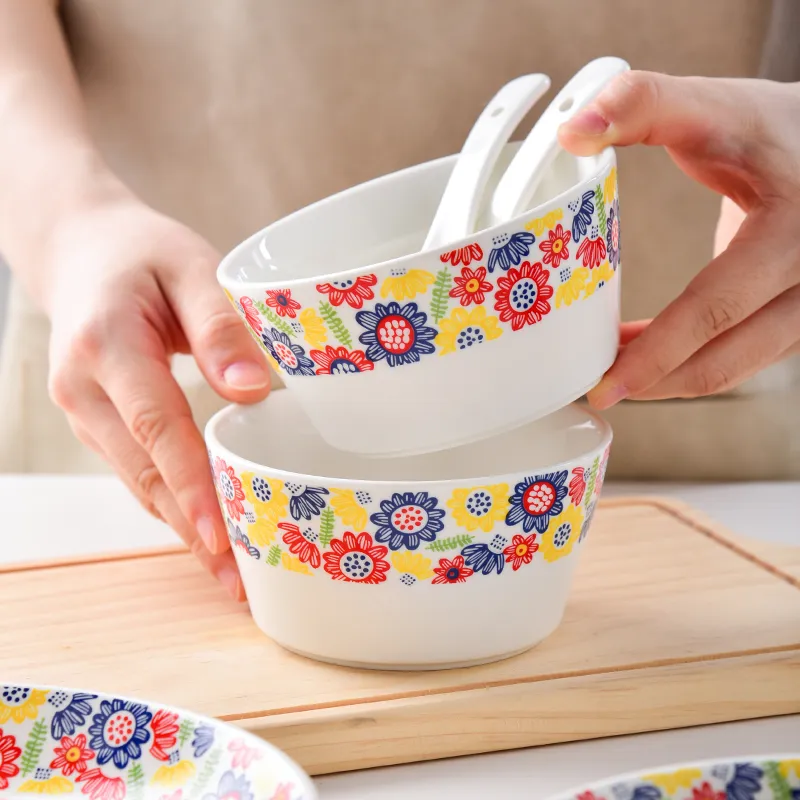 This tableware has a unique charm that adds a distinctive touch to mealtimes. Its appearance is characterised by floral motifs, which are beautifully coloured and harmonious, giving it an aesthetically pleasing appearance. The pattern may be as delicate as traditional embroidery, bringing a rich visual experience. Fine materials and exquisite craftsmanship ensure the quality and durability of the tableware. Whether it's for everyday family meals or special festive gatherings, this cutlery is perfectly suited to the occasion. It is not only a practical dining tool, but also a piece of art that...