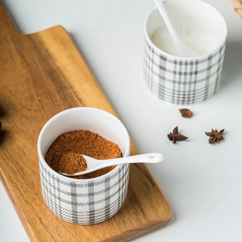Wholesale Ceramic Spice Container Porcelain Seasoning Jar